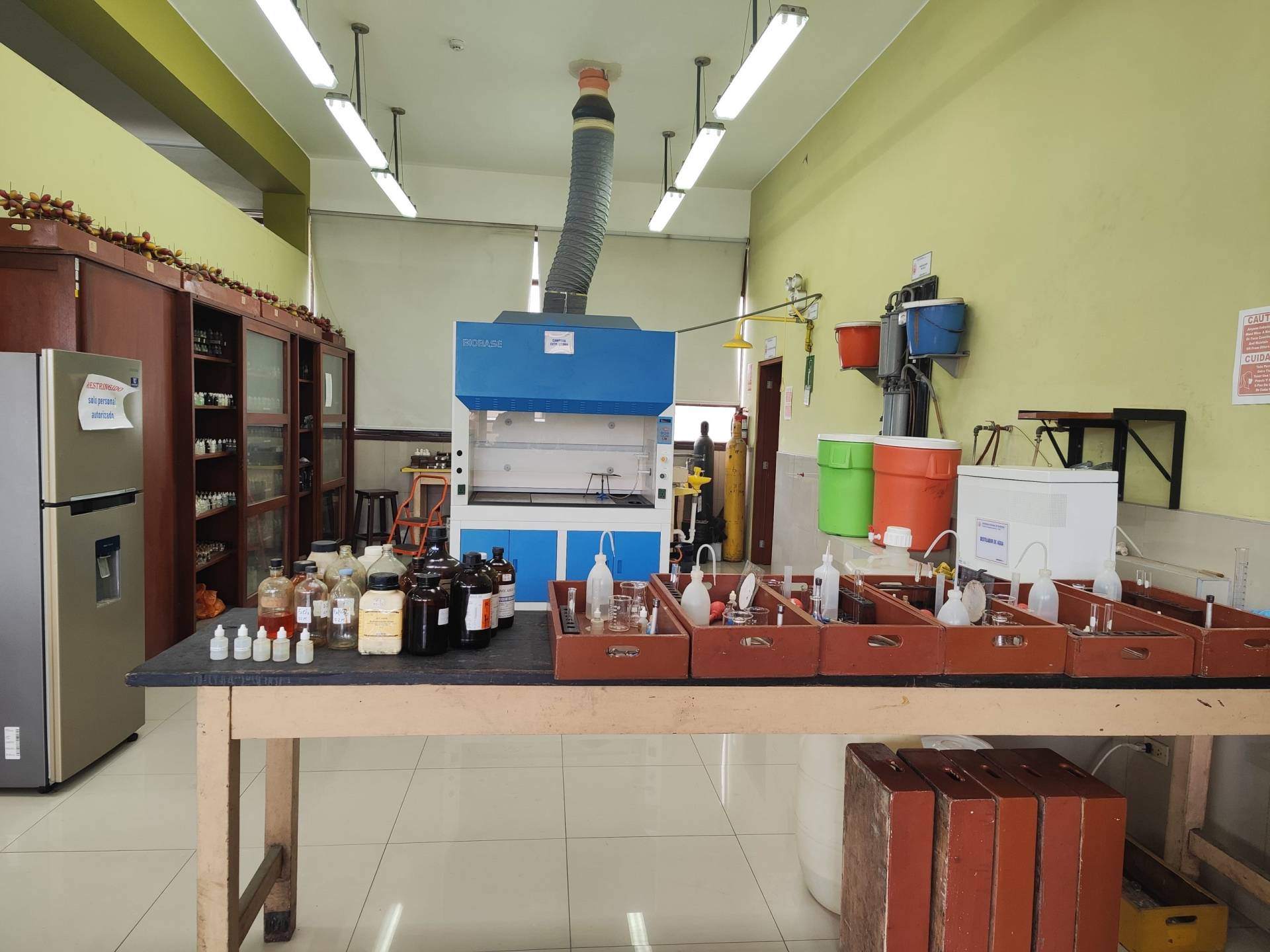 Brinda apoyo al aprendizaje de los estudiantes en la parte experimental de los cursos de Química I, Química II, Química inorgánica y Análisis químico. También los estudiantes realizan los experimentos o pruebas de los proyectos de investigación formativas.